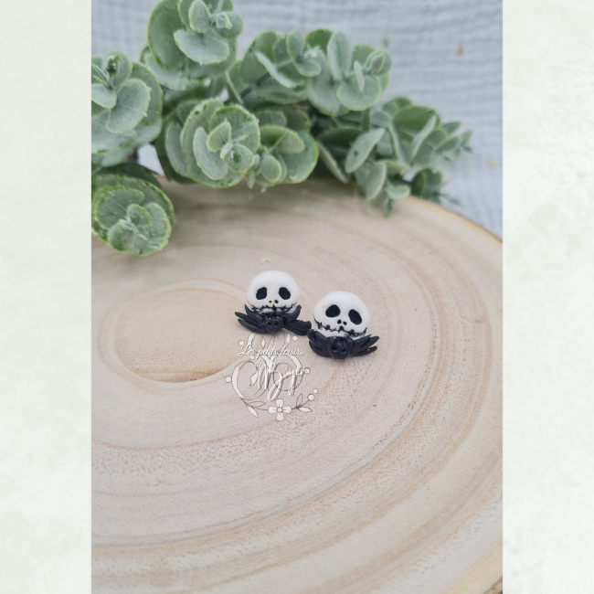 Ces boucles d’oreilles puces en pâte polymère squelettes sont sculptés à la main, parfaits pour ajouter une touche espiègle et discrète à vos tenues automnales.