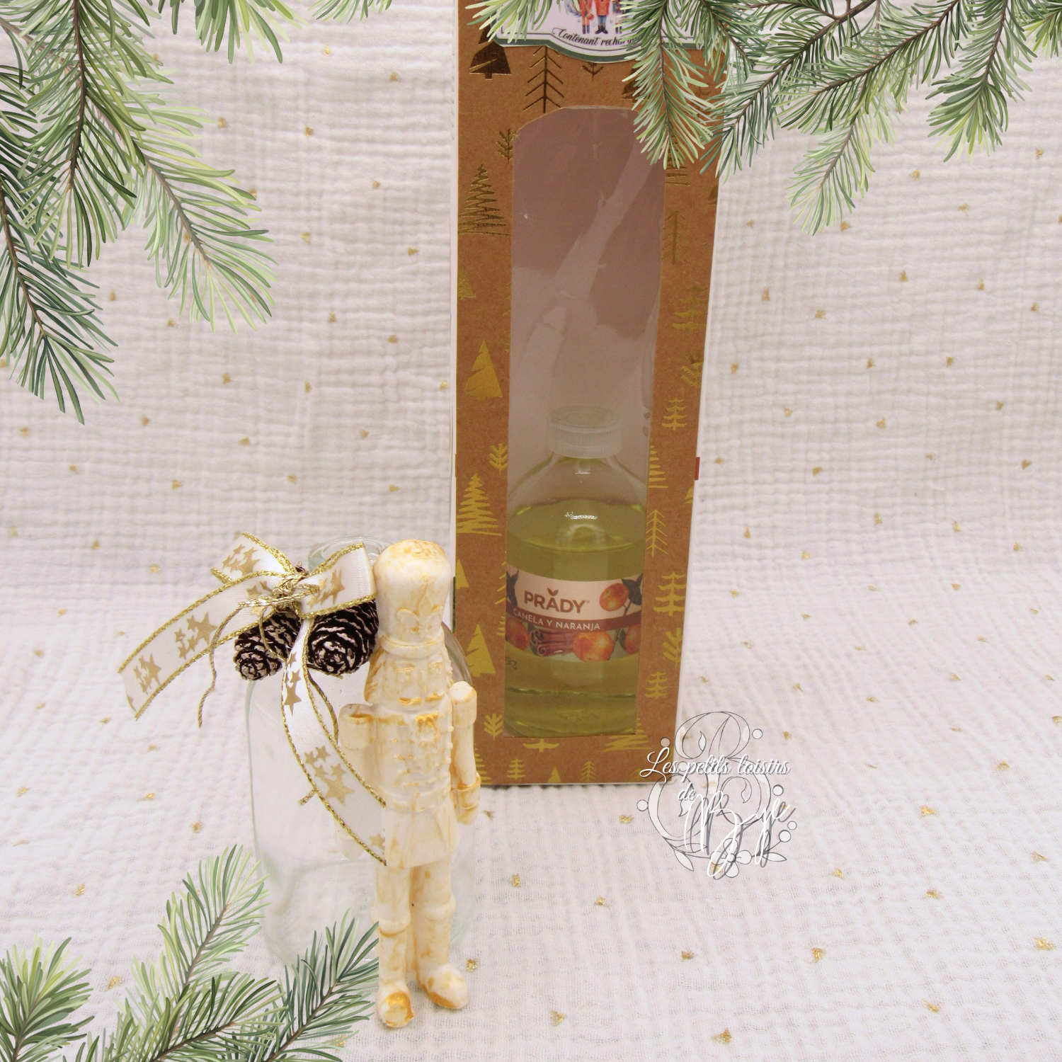 • Un contenant rechargeable diffuseur de parfum (100 ml) décoré d’un Casse-Noisette en pâte polymère, modelé à la main