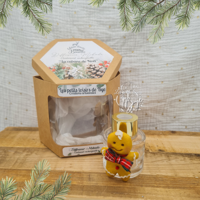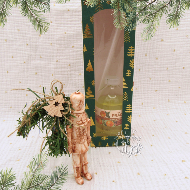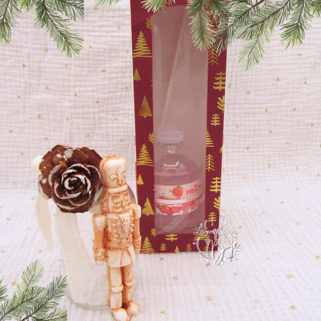 - Un contenant rechargeable diffuseur de parfum (100 ml) décoré d’un Casse-Noisette en pâte polymère, modelé à la main