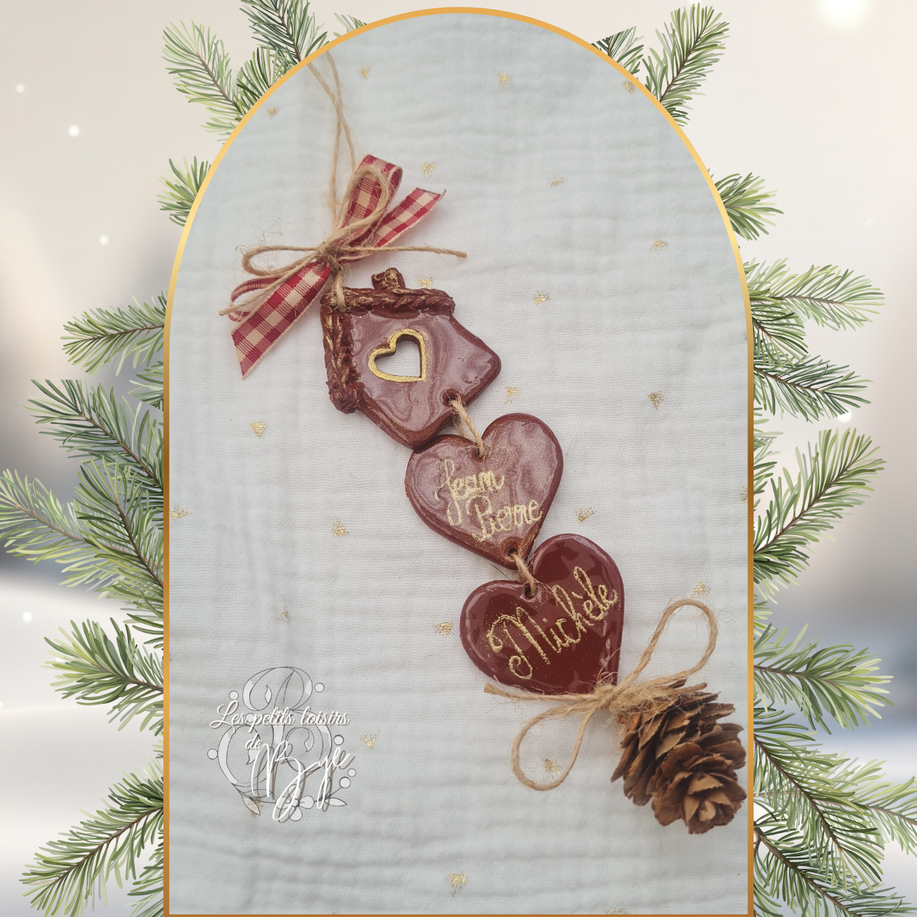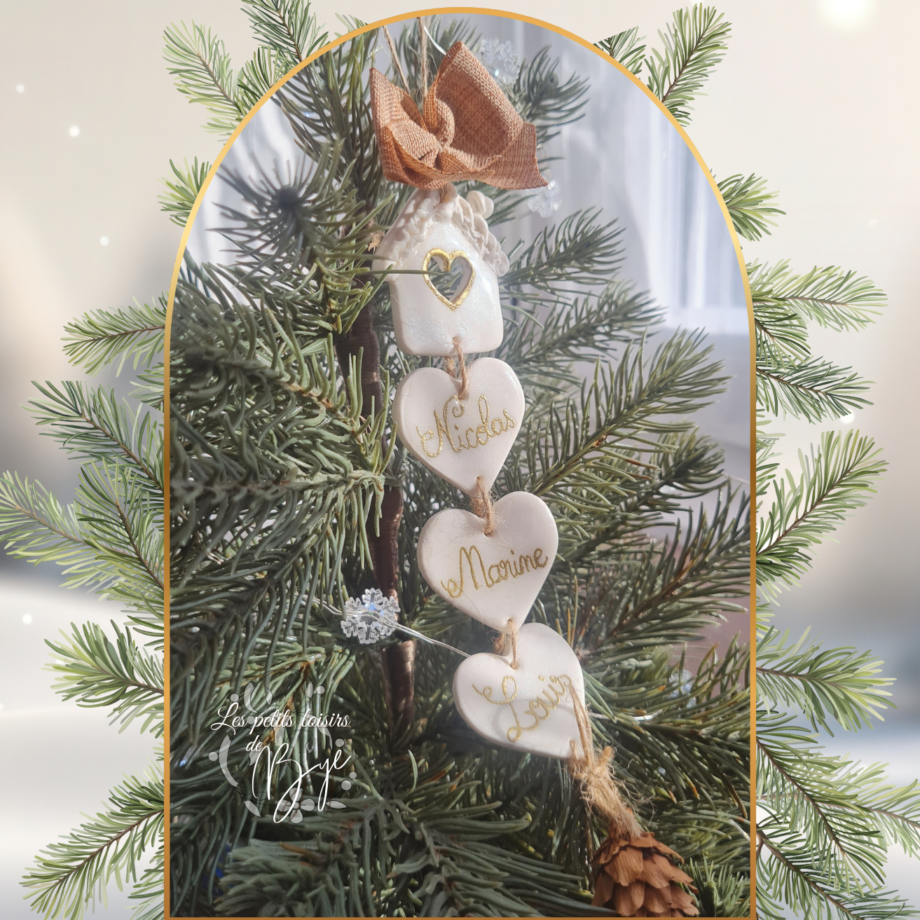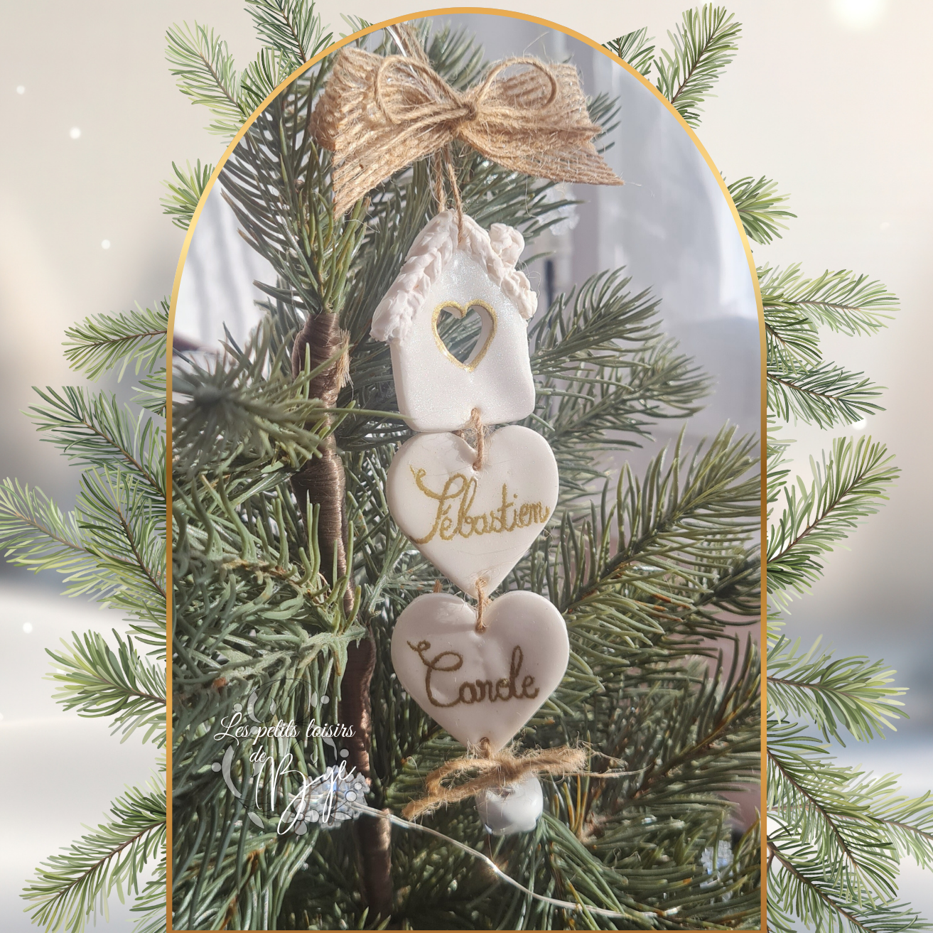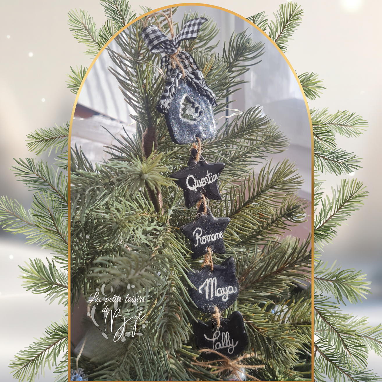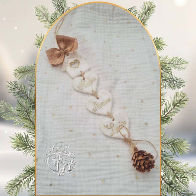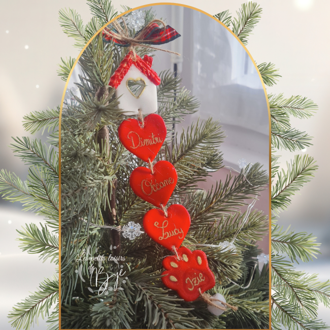 Chaque maison abrite les prénoms de votre tribu, suspendus avec délicatesse et amour, pour illuminer votre sapin d’un doux esprit de famille.